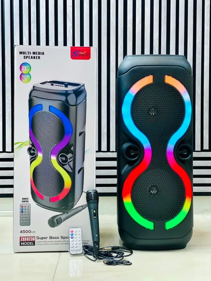 اسپیکر بلوتوثی مدل ZQS-8230 با طراحی شیک و امکانات کامل، گزینهای ایدهآل برای مهمانیها، دورهمیها و استفاده در فضای باز است. این اسپیکر با میکروفون و ریموت کنترل همراه، تجربهای متفاوت از پخش موسیقی و کارائوکه را برای شما فراهم میکند.